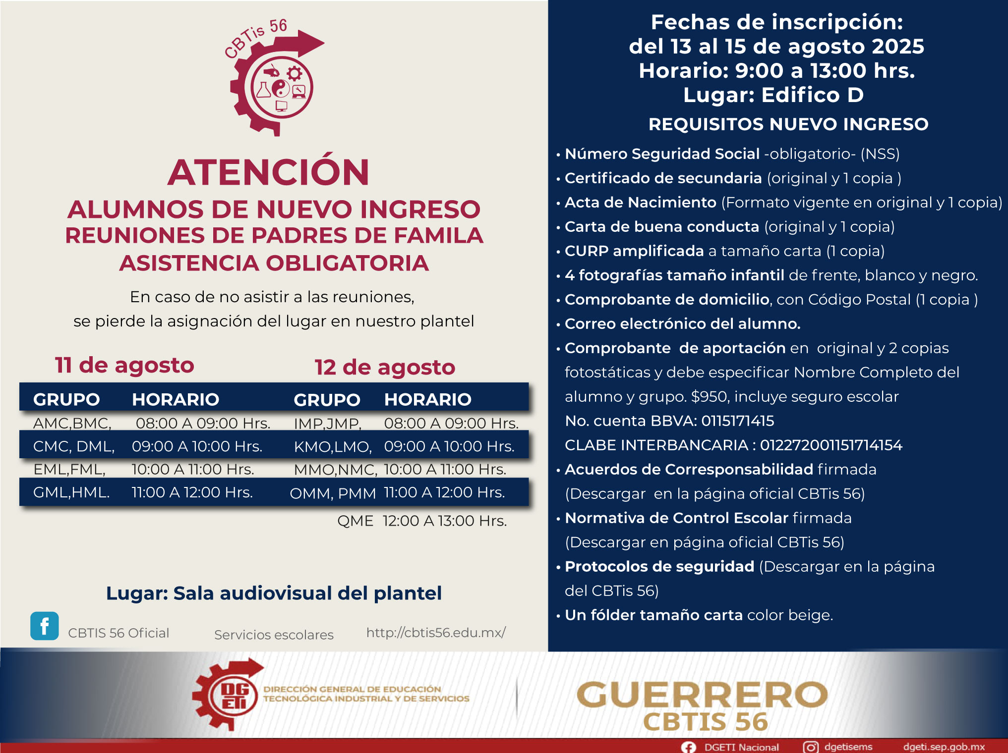IMPORTANTE: Las reuniones de padres de familia son de asistencia obligatorias para conservar el lugar asignado.