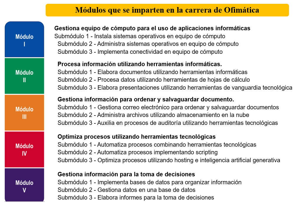 La formación laboral que ofrece la carrera de Técnico en Ofimática prepara al egresado para desempeñar las competencias: