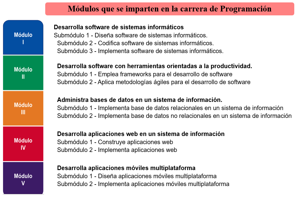 El egresado de la carrera de Programación, deberá ser una persona competente y capaz de participar en el proceso informático, con una visión integradora mediante la aplicación de conocimientos y habilidades en el manejo de los recursos y el uso de las tecnologías modernas para la solución de problemas, aplicando el uso de métodos y fórmulas para realizar la gestión informática para una organización.